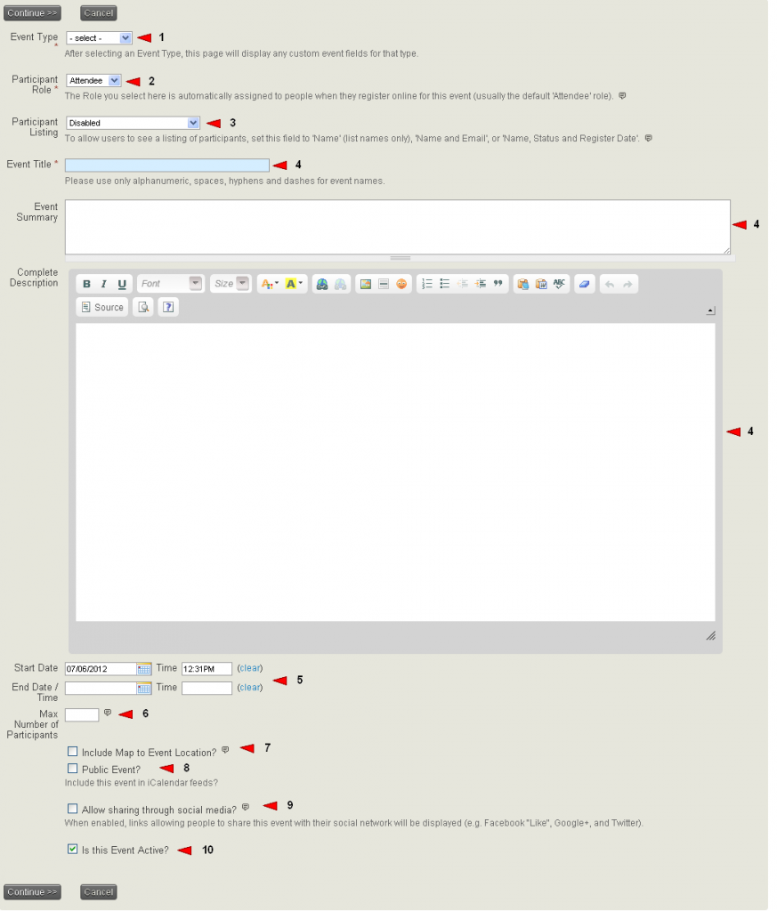 8. Check if you want your event to be Public (Include in iCalendar feeds) or not.
